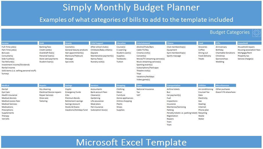 - A tab of category examples to help you know how to categories spending for greater insights