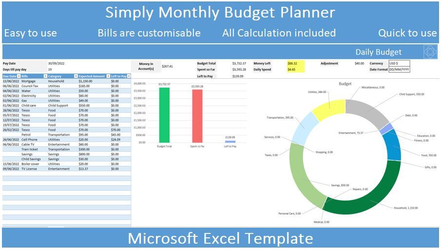 Are you looking for a simple, easy to use Excel template to track your budget, bills and pay? This is the template for you.