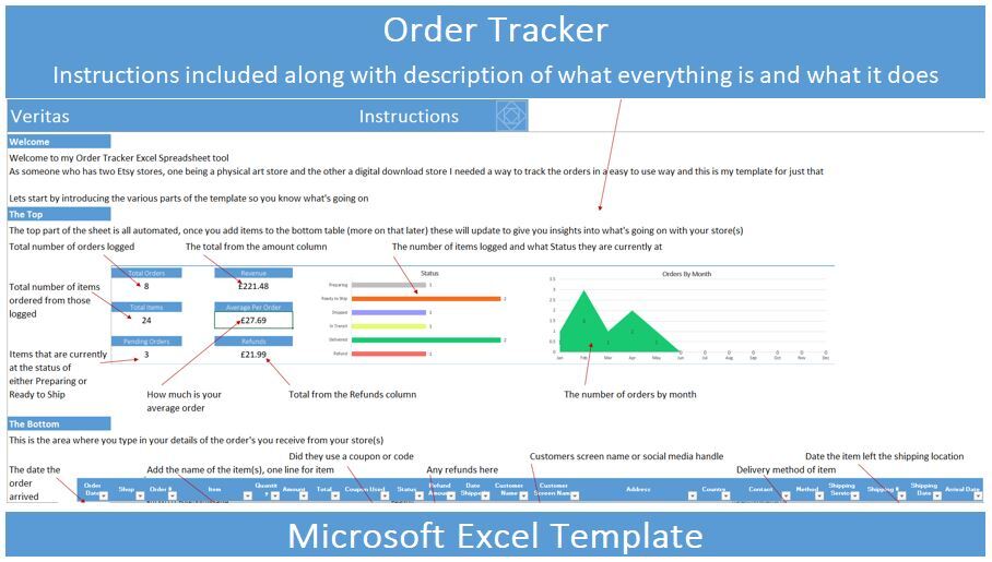 - A digital download of the Order Tracker Template Excel spreadsheet tool (Microsoft Excel required)