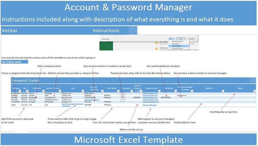 - A digital download of the Account & Password Tracker Excel spreadsheet (Microsoft Excel required)